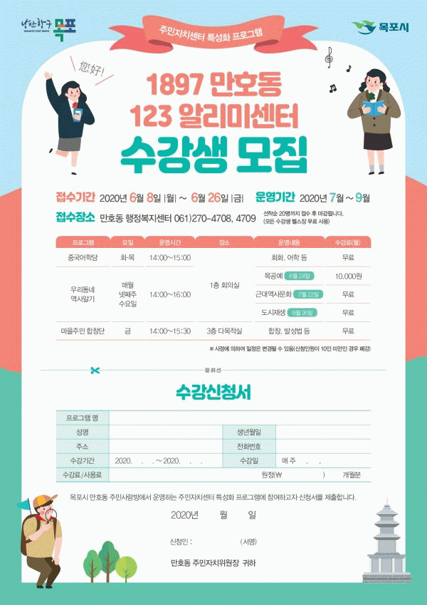[¹Ìµð¾îÀü³² Á¦°¥´ëÁ¾ ±âÀÚ]¸ñÆ÷½Ã ¸¸È£µ¿¿¡¼ ¡®1897 ¸¸È£µ¿ 123 ¾Ë¸®¹Ì¼¾ÅÍ¡¯°¡ ¿¸°´Ù. ¸¸È£µ¿ ÁÖ¹ÎÀÚÄ¡À§¿øÈ¸°¡ ÁÖ°üÇϰí Àü¶ó³²µµÁÖ¹ÎÀÚÄ¡¼¾ÅÍ Æ¯¼ºÈ °ø¸ð»ç¾÷À¸·Î °³ÃֵǴ ¡®1897 ¸¸È£µ¿ 123 ¾Ë¸®¹Ì¼¾ÅÍ¡¯´Â 7¿ù ºÎÅÍ 9¿ù ±îÁö¡¦