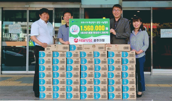[¹Ìµð¾îÀü³² ±èÁ¤¿ì ±âÀÚ] Áö³ 9ÀÏ ¼¿ï¿ìÀ¯ ±¤ÁÖÁöÁ¡ÀÌ Äڷγª19 È®»ê¹æÁö Áö¿ø ÀηÂÀ» À§ÇØ ³ª´²´Þ¶ó¸ç À¯»ê±ÕÀ½·á 1,200°³¸¦ ±¤»ê±¸¿¡ Àü´ÞÇß´Ù. ÀÌ»óÀ± ¼¿ï¿ìÀ¯ ±¤ÁÖÁöÁ¡ÀåÀº ¡°Äڷγª19 Àå±âÈ·Î ÇǷΰ¡ ´©ÀûµÈ °ü·Ã ¾÷¹« Á¾»çÀÚ¡¦
