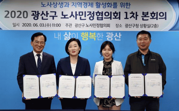 [¹Ìµð¾îÀü³² ±èÁ¤¿ì ±âÀÚ] ±¤»ê±¸ ³ë»ç¹ÎÁ¤ÇùÀÇȸ°¡ 3ÀÏ ±¤»ê±¸Ã»¿¡¼ 2020³â 1Â÷ º»È¸ÀǸ¦ ¿°í ¡®Äڷγª19 ¿¹¹æ°ú Áö¿ª°æÁ¦ Ȱ¼ºÈ¸¦ À§ÇÑ »ó»ýÇù·Â ½Çõ ¼±¾ð¹®¡¯À» äÅÃÇß´Ù. ÀÌ ½Çõ¼±¾ð¹®¿¡´Â »ó»ý Á¤½ÅÀ» ¹ÙÅÁÀ¸·Î Äڷγª19·Î ÀΡ¦