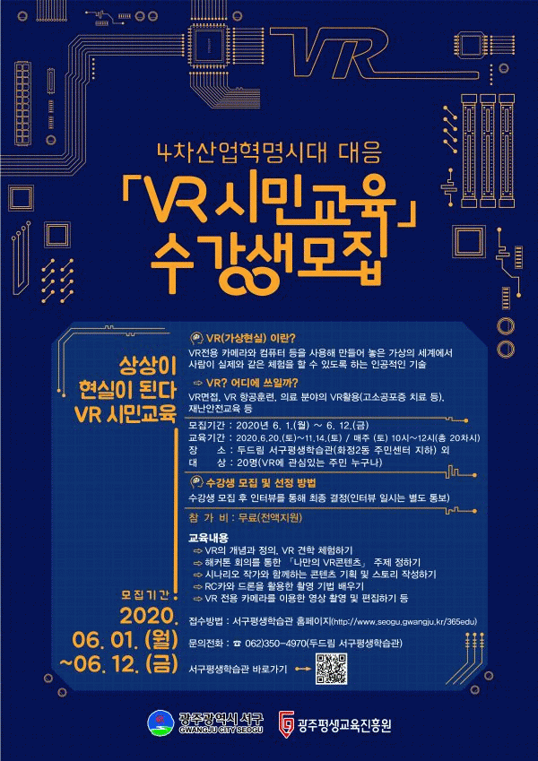 [¹Ìµð¾îÀü³² ±èÁ¤¿ì ±âÀÚ] ±¤ÁÖ ¼±¸°¡ 4Â÷»ê¾÷Çõ¸í½Ã´ë¿¡ ´Éµ¿ÀûÀ¸·Î ´ëÀÀÇϱâ À§ÇÑ ¹Ì·¡ÀÎÀç ¾ç¼ºÀ» À§ÇØ ¡®VR ½Ã¹Î±³À°¡¯ ÇÁ·Î±×·¥À» ¿î¿µÇÑ´Ù. ¼±¸ Æò»ýÇнÀ°ü¿¡¼ ÁøÇàµÇ´Â À̹ø ÇÁ·Î±×·¥Àº ±¤ÁÖÆò»ý±³À°ÁøÈï¿ø°úÀÇ ¾÷¹«Çù¾àÀ» Å롦