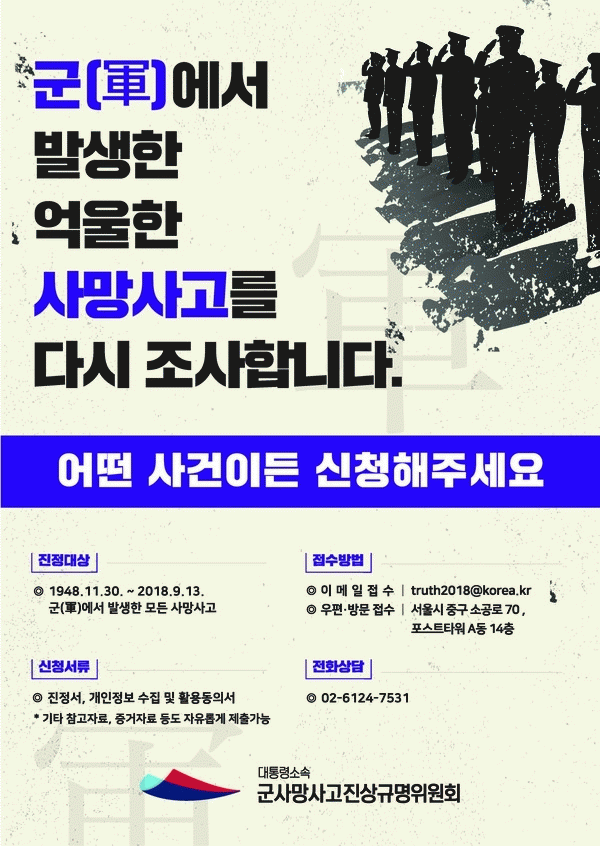 [¹Ìµð¾îÀü³² Á¦°¥´ëÁ¾ ±âÀÚ] ½Å¾È±ºÀº ´ëÅë·É¼Ò¼Ó ±º»ç¸Á»ç°íÁø»ó±Ô¸íÀ§¿øÈ¸¿Í °ü³» ¾ï¿ïÇÑ ±º»ç¸Á»ç°í °ü·Ã À¯°¡Á·µéÀÌ ±âÇÑ ³» º¸´Ù ¸¹ÀÌ ÁøÁ¤ Á¢¼öÇÒ ¼ö ÀÖµµ·Ï È«º¸ Ȱµ¿À» ±ä¹ÐÇÏ°Ô Çù·ÂÇØ ³ª°¡±â·Î Çß´Ù. Áø»ó±Ô¸íÀ§¿øÈ¸´Â Ưº°¹ý¡¦