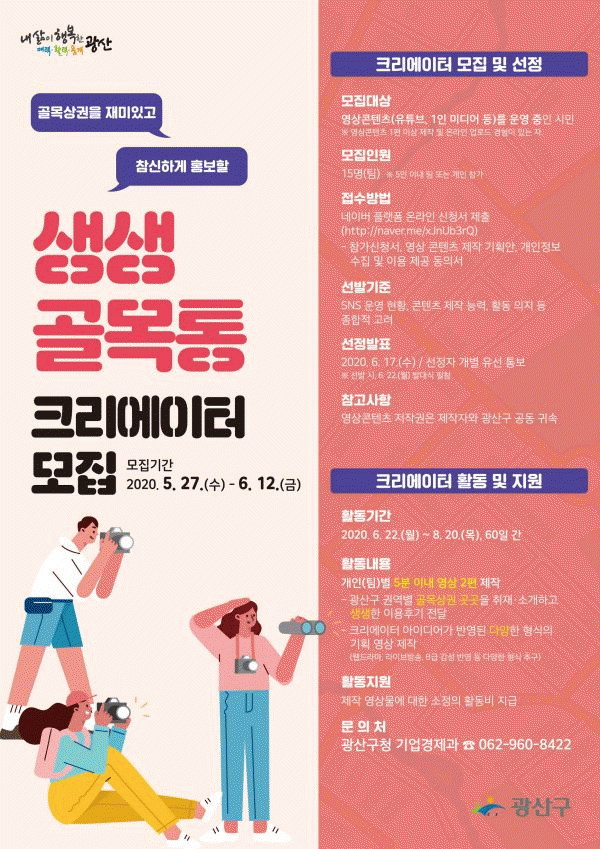 [¹Ìµð¾îÀü³² ±èÁ¤¿ì ±âÀÚ] ±¤»ê±¸°¡ ¿À´Â 27ÀϺÎÅÍ ´ÙÀ½´Þ 12ÀϱîÁö Àç¹ÌÀÖ°í °³¼º ÀÖ´Â ¿µ»óÀ¸·Î ±¤»ê±¸ °ñ¸ñ»ó±Ç ±¸¼®±¸¼®À» È«º¸ÇÒ ¡®»ý»ý °ñ¸ñÅë Å©¸®¿¡ÀÌÅÍ¡¯¸¦ ¸ðÁýÇÑ´Ù. À̹ø ±¤»ê±¸ÀÇ Å©¸®¿¡ÀÌÅÍ ¸ðÁýÀº, ¼Ò¼È¹Ìµð¾î¸¦ ±â¹ÝÀ¸·Î¡¦