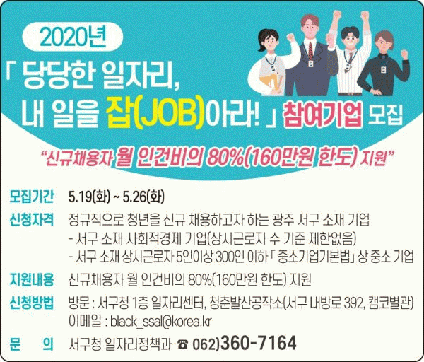 [¹Ìµð¾îÀü³² ±èÁ¤¿ì ±âÀÚ] ±¤ÁÖ ¼±¸°¡ Äڷγª 19 »çŰ¡ Àå±âȵʿ¡ µû¶ó ¡®´ç´çÇÑ ÀÏÀÚ¸®, ³» ÀÏÀ» Àâ¾Æ¶ó¡¯ »ç¾÷ Áö¿ø±â¾÷À» Ãß°¡¸ðÁý ÇÑ´Ù. Áö¿ªÁÖµµÇü û³âÀÏÀÚ¸® »ç¾÷ ¡®´ç´çÇÑ ÀÏÀÚ¸®, ³» ÀÏÀ» Àâ¾Æ¶ó¡¯´Â û³âÀ» ä¿ëÇÑ ±â¾÷¿¡ ¡¦