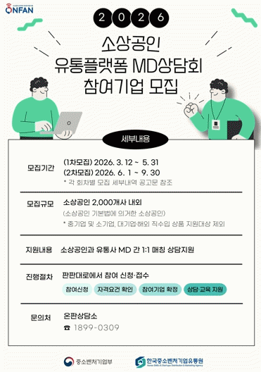 [¹Ìµð¾îÀü³² Á¦°¥´ëÁ¾ ±âÀÚ]±¤ÁÖ±¤¿ª½Ã´Â Áö¿ª ¼Ò»ó°øÀÎÀÇ ¿Â¶óÀÎ ÆÇ·Î È®´ë¿Í °æÀï·Â °È¸¦ À§ÇØ ¡®2026 ¼Ò»ó°øÀÎ À¯ÅëÇ÷§Æû »óǰ±âȹÀÚ(MD) »ó´ãȸ¡¯ Âü°¡¾÷ü 200°÷À» ¿À´Â 5¿ù31ÀϱîÁö ¸ðÁýÇÑ´Ù. À̹ø »ó´ãȸ´Â ±¹³»¿Ü ´ëÇü À¯ÅëÇá¦