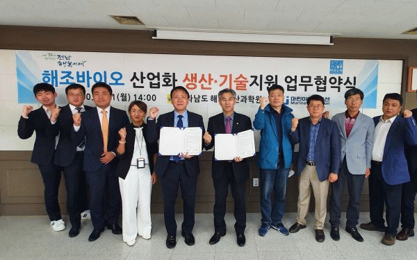 [¹Ìµð¾îÀü³² Á¦°¥´ëÁ¾ ±âÀÚ] Àü³²Çؾç¼ö»ê°úÇпøÀº 11ÀÏ ¢ß¸¶¸°À̳뺣À̼ǰú ¡®ÇØÁ¶¹ÙÀÌ¿À »ê¾÷È¡¯¸¦ À§ÇÑ ¾÷¹«Çù¾àÀ» ü°á, °íºÎ°¡°¡Ä¡ âÃâ·Î ¾î¾÷ÀÎ ¼ÒµæÁõ´ë¿¡ ³ª¼±´Ù. ¢ß¸¶¸°À̳뺣À̼ÇÀº ÇØÁ¶·ù¸¦ ÀÌ¿ëÇÑ ½Äǰ°ú ģȯ°æ Æ÷ÀåÀç µî¡¦