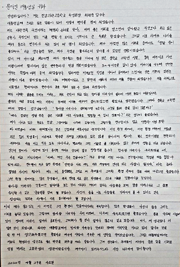[¹Ìµð¾îÀü³² ¹Úº¹»ê ±âÀÚ] ³ªÁֽà ±Ýõ¸é ¼ÒÀç Àü¶ó³²µµ °úÇаíµîÇб³ ÀçÇлýµéÀÌ Ãֱ٠ȣ³²±Ç ´Ù¸ñÀû ¹æ»ç±¤°¡¼Ó±â À¯Ä¡¸¦ Èñ¸ÁÇÏ´Â ³»¿ëÀÇ ÆíÁö¸¦ ¹®ÀçÀÎ ´ëÅë·É¿¡°Ô º¸³½ °ÍÀ¸·Î ¾Ë·ÁÁ® °ü½ÉÀÌ ¸ð¾ÆÁö°í ÀÖ´Ù. 6ÀÏ ³ªÁÖ½Ã¿Í Àü³²°úÇС¦