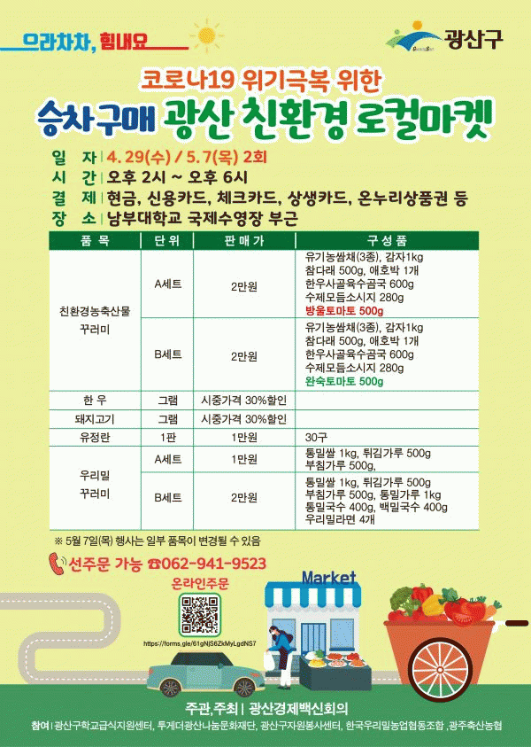 [¹Ìµð¾îÀü³² ±èÁ¤¿ì ±âÀÚ] Äڷγª19 À§±â ±Øº¹ ±¤»ê±¸ ¹Î°ü»êÇÐ ´ëÇ¥ÀÚ ÇùÀÇüÀÎ ±¤»ê°æÁ¦¹é½ÅȸÀǰ¡, ÀÌ´Þ 29Àϰú ´ÙÀ½´Þ 7ÀÏ ¿ÀÈÄ2~6½Ã ³²ºÎ´ëÇб³¿¡¼ Â÷¸¦ Ÿ°í ¹°°ÇÀ» »ç´Â ½ÂÂ÷±¸¸Å ¹æ½ÄÀÇ ¡®Ä£È¯°æ ·ÎÄø¶ÄÏ Æ¯º° ±âȹÀü¡¯À» ½Ç½Ã¡¦