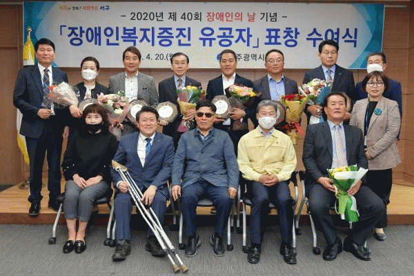 [¹Ìµð¾îÀü³² ±èÁ¤¿ì ±âÀÚ] ±¤ÁÖ ¼±¸´Â Áö³ 20ÀÏ ¼±¸Ã»¿¡¼ 2020³â Á¦40ȸ Àå¾ÖÀÎÀÇ ³¯À» ¸Â¾Æ Àå¾ÖÀκ¹ÁöÁõÁø À¯°øÀÚ¿¡ ´ëÇÑ Ç¥Ã¢ ¼ö¿©½ÄÀ» °³ÃÖÇß´Ù. ǥâ ¼ö¿©½ÄÀº Àå¾ÖÀÎÀÏÀÚ¸® âÃâ ¹× Àå¾ÖÀκ¹ÁöÁõÁø¿¡ ±â¿©ÇÑ ¼ö»óÀÚ 6¸íÀ» ºñ¡¦