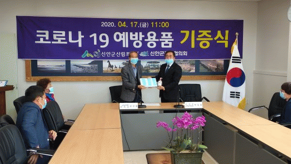 [¹Ìµð¾îÀü³² Á¦°¥´ëÁ¾ ±âÀÚ] ½Å¾È±º °ü±¤ÇùÀÇȸ´Â Äڷγª19 Áö¿ª»çȸ °¨¿° ¿¹¹æÀ» À§ÇØ ¼Õ ¼Òµ¶Á¦ 600°³¿Í ¸¶½ºÅ© 1¸¸ÀåÀ» ½Å¾È±º »ê¸²Á¶ÇÕÀ¸·ÎºÎÅÍ Áö³ 17ÀÏ ±âÁõ¹Þ¾Ò´Ù°í ¹àÇû´Ù. ±âÁõ½Ä¿¡´Â ½Å¾È±º°ü±¤ÇùÀÇȸ ³²»óÀ² ÀÌ»çÀåÀ» ºñ·Ô¡¦
