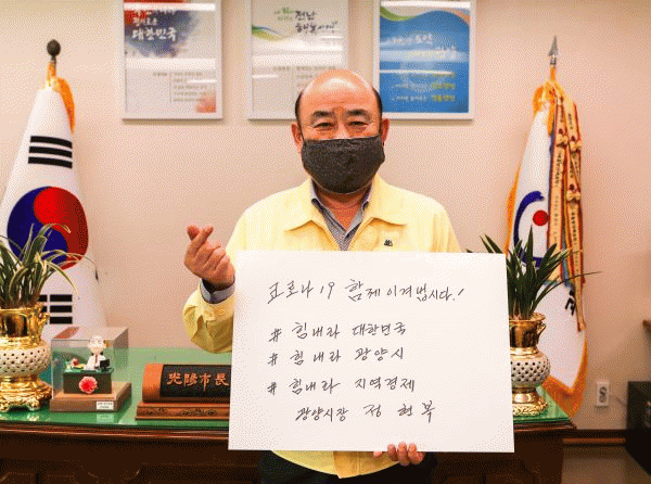 [¹Ìµð¾îÀü³² Á¦°¥´ëÁ¾ ±âÀÚ] Á¤Çöº¹ ±¤¾ç½ÃÀåÀÌ SNS»ó¿¡¼ ÁøÇàµÇ°í ÀÖ´Â ¡®Äڷγª19 ±Øº¹À» À§ÇÑ Èñ¸Á¸Þ½ÃÁö Ä·ÆäÀÎ ¸±·¹ÀÌ¡¯¿¡ Âü¿©Çß´Ù. ¼øÃµÃ»¾Ï´ëÇб³ ¼Çü¿ø ÃÑÀåÀÇ Áö¸ñÀ» ¹Þ¾Æ 4¿ù 14ÀÏ ¡®Äڷγª19 ÇÔ²² À̰ܳÀ½Ã´Ù Èû³»¶ó ´ëÇÑ¡¦