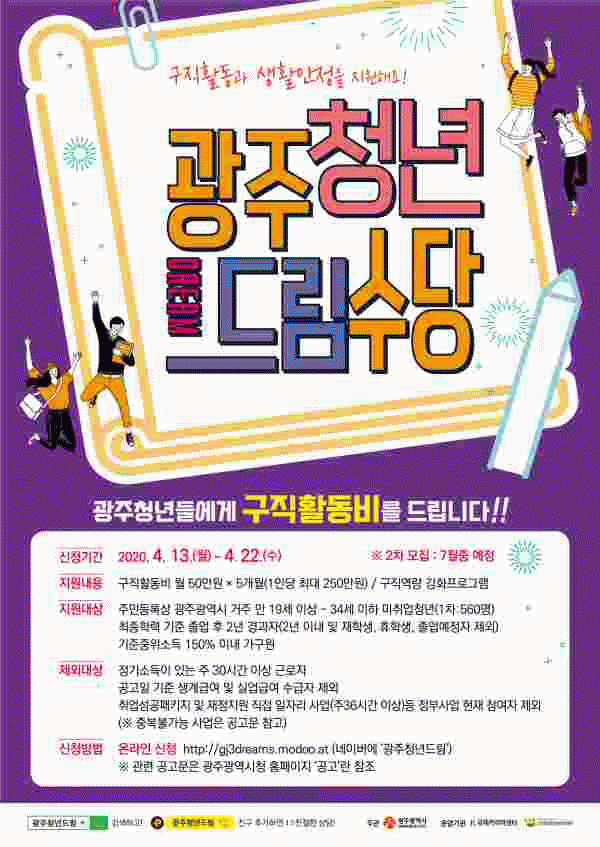 [¹Ìµð¾îÀü³² Á¦°¥´ëÁ¾ ±âÀÚ] ±¤ÁÖ±¤¿ª½Ã´Â Áö¿ª ¹ÌÃë¾÷ û³âµéÀÇ ±¸Á÷Ȱµ¿°ú »ýȰ¾ÈÁ¤À» Áö¿øÇÏ´Â ¡®±¤ÁÖû³âµå¸²¼ö´ç ¹× Ȱµ¿Áö¿ø»ç¾÷¡¯ ½ÅûÀÚ¸¦ ¸ðÁýÇÑ´Ù. û³âÃþÀÇ Âü¿© ±âȸ¸¦ È®´ëÇÏ°í ½ÇÈ¿¼º ÀÖ´Â »ó´ã°ú ±³À°À» º´ÇàÇϱâ À§ÇØ ¡¦