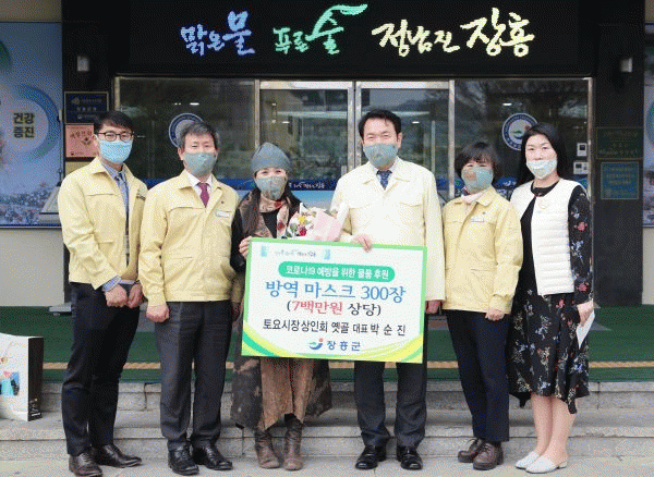 [¹Ìµð¾îÀü³² Á¦°¥´ëÁ¾ ±âÀÚ]Á¤³²Áø ÀåÈï Åä¿ä½ÃÀå¿¡¼ õ¿¬¿°»ö¾÷ü¸¦ ¿î¿µÇÏ´Â ¹Ú¼øÁø ¿¾°ñ ´ëÇ¥°¡ Á÷Á¢ ¸¸µç ¸¶½ºÅ© 300°³¸¦ ÀåÈﱺ¿¡ Àü´ÞÇß´Ù. 10ÀÏ ÀåÈﱺûÀ» ¹æ¹®ÇÑ ¹Ú ´ëÇ¥´Â Äڷγª19 ±Øº¹À» À§ÇØ ³ë·ÂÇÏ´Â ³ëÀθÂÃãµ¹º½¼ºñ½º¡¦