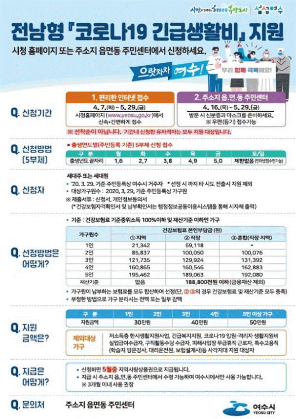 [¹Ìµð¾îÀü³² Á¦°¥´ëÁ¾ ±âÀÚ] ¿©¼ö½Ã´Â ¡®Äڷγª19¡¯ Àå±âÈ·Î ¾î·Á¿òÀ» °Þ°í ÀÖ´Â ½Ã¹ÎµéÀÇ »ýȰ¾ÈÁ¤À» À§ÇØ Áö³ 7ÀϺÎÅÍ Àü³²Çü ¡®Äڷγª19 ±ä±Þ»ýȰºñ¡¯ ¿Â¶óÀÎ Á¢¼ö¿¡ µé¾î°¬´Ù. Àü³²Çü ±ä±Þ»ýȰºñ´Â ÁßÀ§¼Òµæ 100% ¡¤ Àç»ê 188,80¡¦