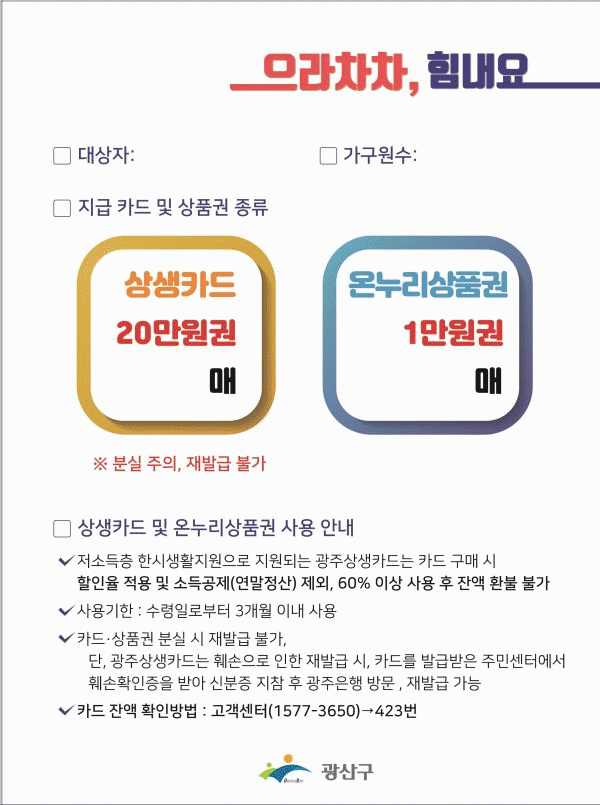 [¹Ìµð¾îÀü³² ±èÁ¤¿ì ±âÀÚ] ±¤»ê±¸°¡ Äڷγª19 Àå±âÈ·Î °æÁ¦Àû ¾î·Á¿òÀ» °Þ°í ÀÖ´Â Ãë¾à°èÃþ »ýȰ¾ÈÁ¤°ú Áö¿ª°æÁ¦ Ȱ¼ºÈ µîÀ» À§ÇØ ¡®Àú¼ÒµæÃþ Çѽà »ýȰ Áö¿ø»ç¾÷¡¯À» 8ÀϺÎÅÍ º»°Ý ÃßÁøÇÑ´Ù. Áö¿ª»óǰ±ÇÀ» Áö¿øÇÏ´Â ÇüÅ·ΠÀü±¹¿¡¼¡¦