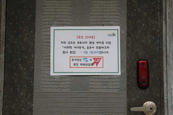 [¹Ìµð¾îÀü³² Á¦°¥´ëÁ¾ ±âÀÚ] Á¤ºÎ¿¡¼ Äڷγª19 È®»ê ¹æÁö¸¦ À§ÇØ Áý´Ü °¨¿° À§Çè½Ã¼³ ¿î¿µ Áß´ÜÀ» ±Ç°íÇϰí ÀÖ´Â °¡¿îµ¥ ¿Ïµµ±º °ü³» À¯ÈïÁÖÁ¡¿¡¼µµ ÈÞ¾÷À» °áÁ¤ÇÏ´Â µî »çȸÀû °Å¸®µÎ±â¿¡ Àû±Ø µ¿ÂüÇϰí ÀÖ´Ù. ¿Ïµµ±ºÃ» °ü±¤°ú °ü°è¡¦
