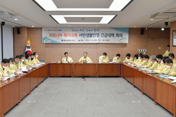 [¹Ìµð¾îÀü³² ±èÁ¤¿ì ±âÀÚ] ±¤ÁÖ ¼±¸°¡ Äڷγª19 ±Øº¹À» À§ÇÑ ¼¹Î»ýȰ¾ÈÁ¤ ±ä±Þ´ëåȸÀǸ¦ ¿°í Ãë¾à°èÃþ¿¡ ´ëÇÑ »ý°èºñ Áö¿ø µî ¹Î»ý¾ÈÁ¤À» À§ÇÑ Æ¯´ÜÀÇ Á¶Ä¡¸¦ ÃëÇÒ ¹æÄ§ÀÌ´Ù. 24ÀÏ ±¸Ã» »óȲ½Ç¿¡¼ °³ÃÖÇÑ ±ä±Þ ȸÀÇ¿¡¼ ¼±¸´Â ºÎ¡¦