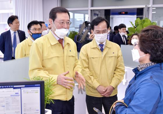 [¹Ìµð¾îÀü³² Á¦°¥´ëÁ¾ ±âÀÚ] À̿뼷 ±¤ÁÖ±¤¿ª½ÃÀåÀÌ 20ÀÏ ¡®Äڷγª ÇÇÇØ ¼Ò»ó°øÀΠƯ·Êº¸Áõ¡¯ ¾÷¹«¸¦ ¼öÇàÇϰí ÀÖ´Â ±¤Áֽſ뺸ÁõÀç´Ü ¼ÛÁ¤ÁöÁ¡À» ã¾Æ ½Ã¹ÎµéÀ» ÀÀ¿øÇϰí Á÷¿øµéÀ» °Ý·ÁÇß´Ù. À̳¯ °³¼ÒÇÑ ±¤Áֽź¸ ¼ÛÁ¤ÁöÁ¡Àº ¡®ÄڷΡ¦