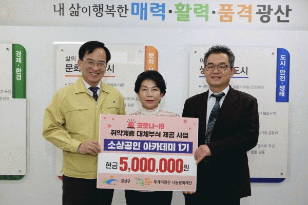 [¹Ìµð¾îÀü³² ±èÁ¤¿ì ±âÀÚ]ÀÚ¿µ¾÷ÀÚ °æ¿µ ¿ª·® °È¸¦ À§ÇØ ±¤»ê±¸°¡ Áö³ÇØ 5~7¿ù ÁøÇàÇÑ ¡®¼Ò»ó°øÀξÆÄ«µ¥¹Ì¡¯ 1±â ¼ö·áÀÚµéÀÌ, 13ÀÏ Äڷγª19 ¿©ÆÄ·Î ¾î·Á¿òÀ» °Þ°í ÀÖ´Â ¾î¸£½ÅµéÀ» À§ÇØ ½á´Þ¶ó¸ç 500¸¸¿øÀ» ±¤»ê±¸¸¦ ÅëÇØ Åõ°Ô´õ±¤»ê¡¦