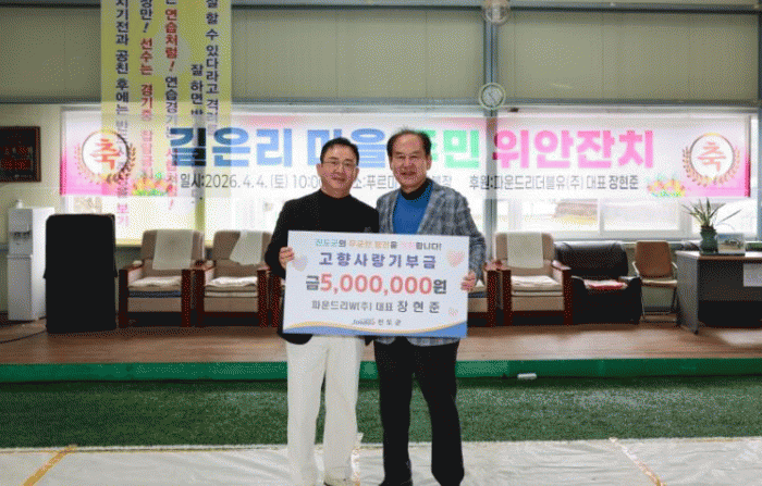 [¹Ìµð¾îÀü³² Á¦°¥´ëÁ¾ ±âÀÚ]Áøµµ±º Áö»ê¸é ±æÀº¸® Ãâ½ÅÀÎ ÀåÇöÁØ ÆÄ¿îµå¸®´õºíÀ¯(ÁÖ) ´ëÇ¥°¡ °íÇâÀÎ ±æÀº¸¶À»¿¡¼ ¿¸° ¾î¸£½Å À§¾ÈÀÜÄ¡¿¡ Âü¼®ÇØ, Áö¿ª Áֹεé°ú ¼ÒÅëÇÏ¸ç µû¶æÇÑ ³ª´®ÀÇ ½Ã°£À» °¡Á³´Ù. ƯÈ÷, °íÇâ¿¡ ´ëÇÑ ¾ÖÁ¤À» ´ã¾Æ¡¦
