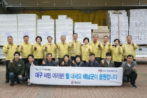 [¹Ìµð¾îÀü³² À±º¸Çö ±âÀÚ] Äڷγª19·Î ÀÎÇØ ¾î·Á¿òÀ» °Þ°í ÀÖ´Â ´ë±¸ Áö¿ª¹ÎÀ» µ½±â À§ÇØ ÇØ³²±º ³ó°¡¿¡¼ ÈûÀ» º¸ÅÉ´Ù. ÇØ³²±º Á÷¿µ ¿Â¶óÀÎ ¼îÇθô ¡®Çس²¹Ì¼Ò¡¯¿¡ ÀÔÁ¡ÇÑ 10°³ ¾÷ü¿Í ÇØ³²±ºÀº 9ÀÏ ´ë±¸Áö¿ª µ½±â ÈÄ¿ø¹°Ç°À¸·Î ÇØ³²³ó¡¦
