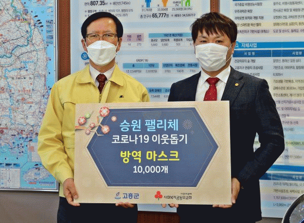 [¹Ìµð¾îÀü³² Á¦°¥´ëÁ¾ ±âÀÚ] °íÈﱺÀº 4ÀÏ ³²°èÅÃÁöÁö±¸ ½ÃÇà»çÀÎ ½Â¿ø ÆÓ¸®Ã¼ ±è½Â±¸ ´ëÇ¥°¡ Äڷγª19 ÀÌ¿ôµ½±â¸¦ À§ÇØ ¸¶½ºÅ© 1¸¸°³¸¦±âŹÇß´Ù°í ¹àÇû´Ù. ±è½Â±¸ ´ëÇ¥´Â ¡°Äڷγª 19·Î Àü±¹¹ÎÀÌ ¾î·Á¿òÀ» °Þ´Â »óȲÀε¥, ±âŹÇÑ ¹°Ç°ÀÌ¡¦