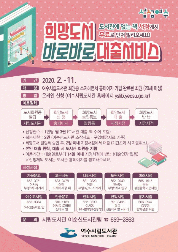 [¹Ìµð¾îÀü³² Á¦°¥´ëÁ¾ ±âÀÚ] ¿©¼ö½Ã°¡ ½Ã¹Îµé¿¡°Ô º¸´Ù ºü¸£°Ô Èñ¸Áµµ¼¸¦ Á¦°øÇϱâ À§ÇØ Áö¿ª ¼Á¡¿¡¼ ¸ÕÀú Ã¥À» ºô·Á º¸´Â ¡®Èñ¸Áµµ¼ ¹Ù·Î¹Ù·Î ´ëÃ⼺ñ½º¡¯¸¦ ½ÃÇàÇÑ´Ù. ÀÐ°í ½ÍÀº Ã¥ÀÌ À̼ø½Åµµ¼°ü¿¡ ¾ø´Â °æ¿ì ¿©¼ö½Ã¸³µµ¼°ü Ȩ¡¦