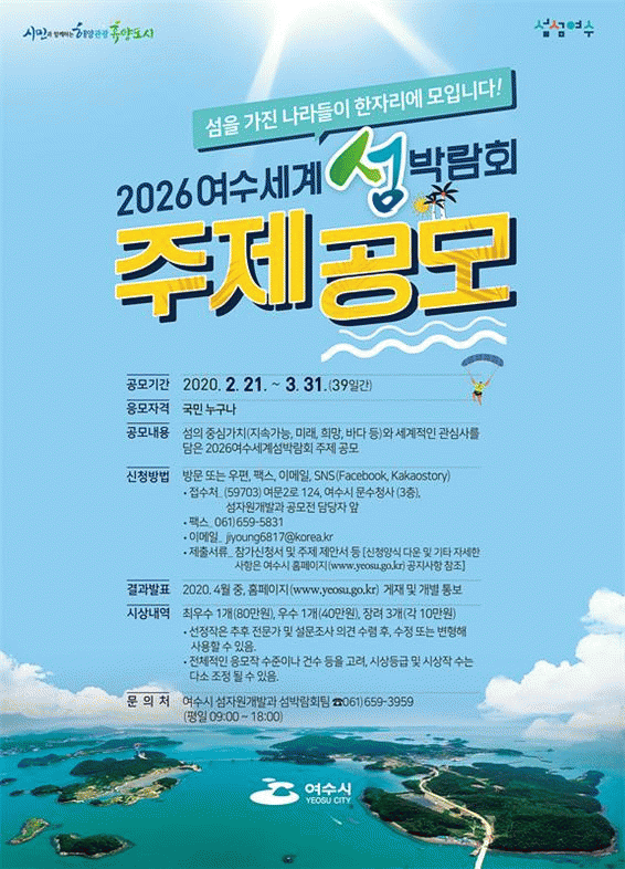 [¹Ìµð¾îÀü³² Á¦°¥´ëÁ¾ ±âÀÚ] ¿©¼ö½Ã´Â ¡®2026¿©¼ö¼¼°è¼¶¹Ú¶÷ȸ¡¯ ÁÖÁ¦¿¡ ´ëÇÑ ½Ã¹Î ¾ÆÀ̵ð¾î¸¦ °ø¸ðÇÑ´Ù°í 20ÀÏ ¹àÇû´Ù. ÁÖÁ¦´Â ¼¶ÀÇ ÇÙ½É °¡Ä¡¿Í ¹ü±¹°¡Àû °ü½É»ç¸¦ ´ã°í ÀÖÀ¸¸ç °£°áÇϸ鼵µ ÇÔÃàÀû ´Ü¾î·Î ¼¶ ¹Ú¶÷ȸÀÇ ¹æÇâÀ» Á¦½ÃÇÒ¡¦