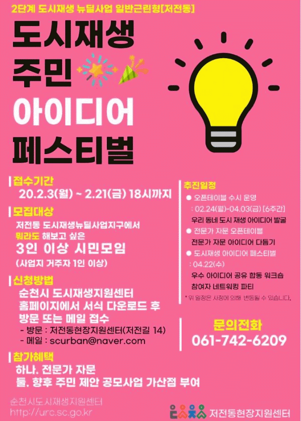 [¹Ìµð¾îÀü³² Á¦°¥´ëÁ¾ ±âÀÚ] ¼øÃµ½Ã´Â ÀúÀüµ¿, Àåõµ¿¡¤³²Á¦µ¿Áö¿ªÀÇ µµ½ÃÀç»ý »ç¾÷¿¡ ½Ã¹ÎµéÀÇ ÀǰßÀ» ¸ð¾Æ ÃßÁøÇϱâ À§ÇÑ ¡®µµ½ÃÀç»ý ÁֹΠ¾ÆÀ̵ð¾î Æä½ºÆ¼¹ú¡¯ÀÇ Âü°¡ÀÚ¸¦ ¿À´Â 21ÀϱîÁö ¸ðÁýÇÑ´Ù°í ¹àÇû´Ù. ¡®µµ½ÃÀç»ý ÁֹΠ¾ÆÀ̵ð¾î¡¦