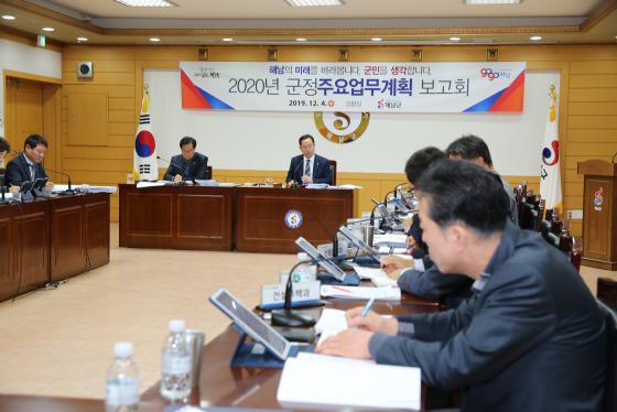 ÇØ±º³²Àº 4ÀÏ ±ºÃ» »óȲ½Ç¿¡¼ ¸íÇö°ü ±º¼öÀÇ ÁÖÀç·Î 23°³ ½Ç°ú¼ÒÀåÀÌ Âü¼®ÇÑ °¡¿îµ¥ ¡®2020³â ±ºÁ¤ ÁÖ¿ä¾÷¹«°èȹ º¸°íȸ¡¯¸¦ °¡Á³´Ù. À̳¯ º¸°íȸ´Â ¹Î¼± 7±â ¡®ºû³ª¶ó ¶¥³¡ ´Ù½Ã ¶Ù´Â ÇØ³²¡¯±ºÁ¤¸ñÇ¥¿¡ µû¶ó 2019³â ºÐ¾ßº° ¼º°ú¸¦ Á¡¡¦