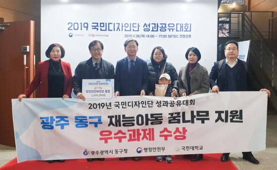 ±¤ÁÖ µ¿±¸(ûÀå ÀÓÅÃ)°¡ Áö³´Þ 28ÀÏ ¼¿ï¹«¿ªÀü½ÃÄÁº¥¼Ç¼¾ÅÍ(SETEC)¿¡¼ ¿¸° ¡®2019³â ±¹¹ÎµðÀÚÀ뫆 ¼º°ú°øÀ¯´ëȸ¡¯¿¡¼ 'µ¿±¸ Àç´É¾Æµ¿ ²Þ³ª¹« Áö¿ø»ç¾÷¡¯À¸·Î ÇàÁ¤¾ÈÀüºÎ Àå°ü»óÀ» ¼ö»óÇß´Ù°í ¹àÇû´Ù. ÇàÁ¤¾ÈÀüºÎ¿Í Çѱ¹µðÀÚÀÎÁøÈ