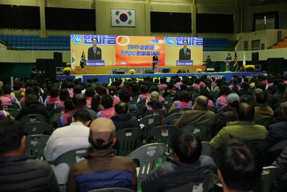 dz¿ä·Î¿î Àϳ⠳ó»ç¸¦ ¸¶¹«¸®ÇÏ´Â ½Ã±â¸¦ ¸Â¾Æ ³ó»ç¿¡ ÁöÄ£ ³ó¾÷ÀεéÀÇ ½É½ÅÀ» ´Þ·¡ÁÖ°í »ç±â¸¦ ÁøÀÛÇÏ´Â ÇÑÆí ½Å¾È±º ³ó¾÷ÀÎ °¡Á·ÀÇ ÈÇÕ°ú ´Ü°áÀ» ¿°¿øÇϱâ À§ÇÑ 2019½Å¾È±º³ó¾÷ÀÎÇѸ¶À½´ëȸ°¡ Áö³ 13ÀÏ ½Å¾È±º¹ÎüÀ°°ü¿¡¼ ¼ºÈ²¸®¿¡ ¡¦
