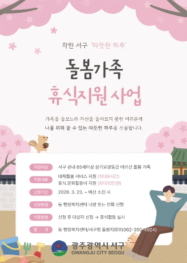 [¹Ìµð¾îÀü³² Á¦°¥´ëÁ¾ ±âÀÚ]±¤ÁÖ±¤¿ª½Ã ¼±¸°¡ ±¤ÁÖ ÃÖÃÊ·Î µ¹º½ °¡Á·¿¡°Ô ÈÞ½Ä È°µ¿ºñ¸¦ Áö¿øÇÑ´Ù. ¼±¸´Â Àå±â°£ °¡Á·À» µ¹º¸´Â ÁÖ¹ÎÀÇ ºÎ´ãÀ» ÁÙÀ̰í Áö¼Ó °¡´ÉÇÑ µ¹º½È¯°æÀ» Á¶¼ºÇϱâ À§ÇØ ¡®µ¹º½°¡Á· ÈÞ½ÄÁö¿ø»ç¾÷¡¯À» ÃßÁøÇÑ´Ù°í 2¡¦