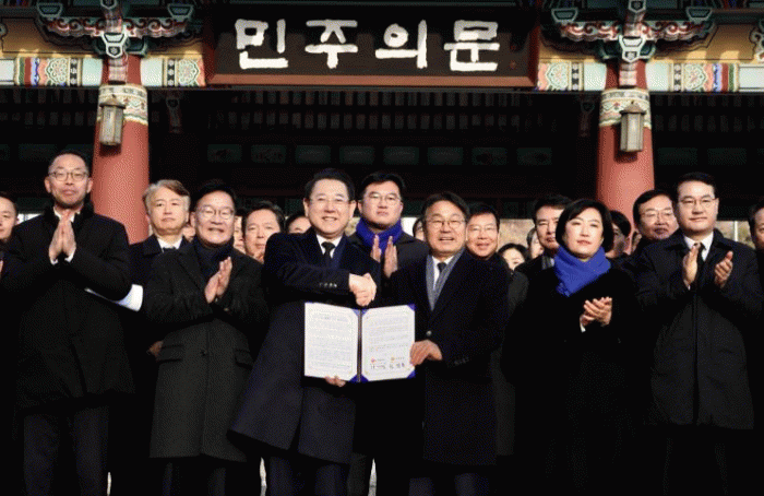 [¹Ìµð¾îÀü³² Á¦°¥´ëÁ¾ ±âÀÚ]º´¿À³â »õÇØ, ±¤ÁÖ½Ã¿Í Àü³²µµ°¡ ´ëÇѹα¹ ¹ÎÁÖÈÀÇ »ó¡ÀÎ ±¹¸³5¡¤18¹ÎÁÖ¹¦Áö ¿À¿ù¿µ·É ¾Õ¿¡¼ ±¤ÁÖ¡¤Àü³² ´ëºÎÈïÀÇ »õ ¿ª»ç¸¦ ¿¾î°¡±â À§ÇÑ ÇàÁ¤ÅëÇÕÀ» Áï°¢ ÃßÁøÇϱâ·Î °øµ¿ ¼±¾ðÇß´Ù. °±âÁ¤ ±¤ÁÖ±¤¿ª¡¦