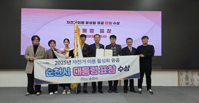 [¹Ìµð¾îÀü³² ÀÓ¼º¿Ï ±âÀÚ]¼øÃµ½Ã´Â 4ÀÏ °æÁÖȹéÄÁ¹ê¼Ç¼¾ÅÍ¿¡¼ ¿¸° ÇàÁ¤¾ÈÀüºÎ ÁÖ°ü ¡®2025³â ÀÚÀü°Å ÀÌ¿ë Ȱ¼ºÈ À¯°ø¡¯ Á¤ºÎÆ÷»ó¿¡¼ ´ëÅë·É ǥâÀ» ¼ö»óÇß´Ù°í ¹àÇû´Ù. À̹ø Æò°¡´Â ÀÚÀü°Å ÀÌ¿ë½Ã¼³ È®Ãæ, ÀÌ¿ë¹®È Á¤Âø, ±â°üÀå °ü¡¦