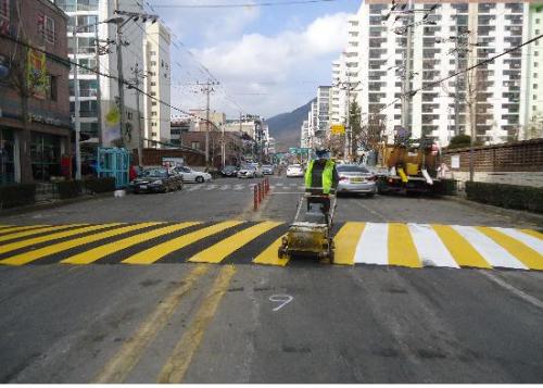 [ȼø=¹Ìµð¾îÀü³²]¾çÀμ± ±âÀÚ=ȼø±º(±º¼ö ±¸Ãæ°ï)ÀÌ ±³Åë»ç°í ¿¹¹æÀ» À§ÇØ °ú¼Ó¹æÁöÅÎ ÀÏÁ¦Á¤ºñ¿Í Â÷¼±ºÐ¸®´ë¸¦ ¼³Ä¡ÇÏ´Â µî ±³Åë½Ã¼³¹° Á¤ºñ¿¡ ³ª¼¹´Ù. ±ºÀº Ç¥¸é µµ»öÀÌ Áö¿öÁ® ½Äº°ÀÌ ¾î·Æ°Å³ª Á¤ÇØÁø ±Ô°Ýº¸´Ù ³ô°Ô ¼³Ä¡µÅ »ç°í¡¦