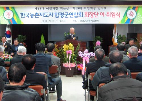 [ÇÔÆò=¹Ìµð¾îÀü³²]³ª±Ùä ±âÀÚ=(»ç)Çѱ¹³óÃÌÁöµµÀÚ ÇÔÆò±º¿¬ÇÕȸ°¡ 30ÀÏ ÇÔÆò±º³ó¾÷±â¼ú¼¾ÅÍ¿¡¼ Á¦18¡¤19´ë ȸÀå´Ü ÀÌ¡¤ÃëÀÓ½ÄÀ» °¡Á³´Ù. Áö¹®»ó ÀÌÀÓȸÀåÀ» ´ë½ÅÇØ ±è¼®È£ ȸÀåÀÌ ½ÅÀÓȸÀåÀ¸·Î ÃëÀÓÇßÀ¸¸ç, ±è ȸÀåÀº ³»ºóµéÀÇ °Ý¡¦