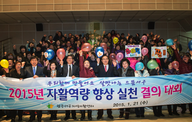 [±¤ÁÖ=¹Ìµð¾îÀü³²]¹ÚÂù ±âÀÚ=±¤ÁÖ ¼±¸Ã»Àº 21ÀÏ ¿ÀÈÄ ¼±¸ ±ÝÈ£µ¿ ±¤ÁÖ½ÃûÀڹ̵ð¾î¼¾ÅÍ 2Ãþ ´Ù¸ñÀû½Ç¿¡¼ ¡®2015³âµµ ÀÚȰ¿ª·® Çâ»ó ½Çõ °áÀÇ´ëȸ¡¯¿¡ Âü¿©ÇÑ ÀÚȰ¼¾ÅÍ »ç¾÷Âü¿©ÀÚ 100¿©¸íÀº ÀÓ¿ìÁø ¼±¸Ã»ÀåÀÇ Ç¥Àå¼ö¿©¿Í Àå±âÀÚ¶ûµî¡¦