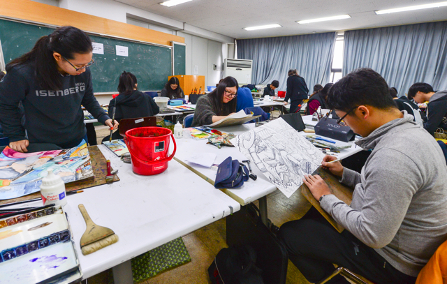 [±¤ÁÖ=¹Ìµð¾îÀü³²]¹ÚÂù ±âÀÚ=5ÀÏ ¿ÀÀü ±¤ÁÖ µ¿±¸ Á¶¼±´ëÇб³ ¹Ì¼ú´ëÇп¡¼ ¸¸È¡¤¾Ö´Ï¸ÞÀ̼ǰú Áö¿øÇлýµéÀÌ 2015Çг⵵ Á¤½Ã¸ðÁý ½Ç±â½ÃÇèÀ» Ä¡·ç°í ÀÖ´Ù.