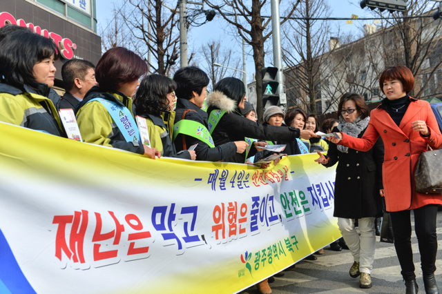 [±¤ÁÖ=¹Ìµð¾îÀü³²]¹ÚÂù ±âÀÚ=±¤ÁÖ ºÏ±¸Ã»Àº 5ÀÏ ¿ÀÈÄ ºÏ±¸ ¿î¾Ï3µ¿ Áֹμ¾ÅÍ ¾Õ¿¡¼ 226Â÷ ¾ÈÀüÁ¡°ËÀÇ ³¯À» ¸Â¾Æ ÈÀç, Æø¼³, ¼³ÇØ µî °Ü¿ïö ÀÚ¿¬Àç³ ´ëºñ ¾ÈÀü»ç°í ¿¹¹æÀ» À§ÇÑ ¾ÈÀü»ç°í Ä·ÆäÀÎÀ» ¿¬ °¡¿îµ¥ Á÷¿øµé°ú ºÏºÎ¼Ò¹æ¼, °ü¡¦