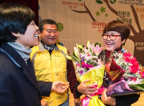 [±¤ÁÖ=¹Ìµð¾îÀü³²]¹ÚÂù ±âÀÚ=10ÀÏ ¿ÀÈÄ ±¤ÁÖ±¤¿ª½Ãû 3Ãþ ´ëȸÀǽǿ¡¼ ¡®2014 ±¤ÁÖÀÚ¿øºÀ»çÀÚ ´ëȸ¡¯°¡ °³ÃÖµÈ °¡¿îµ¥ ´ëÅë·É»óÀ» ¼ö»óÇÑ È«Á¡¼ø ¾¾°¡ À±ÀåÇö ±¤ÁÖ±¤¿ª½ÃÀåÀ¸·Î ºÎÅÍ »óÀåÀ» ºÎ¿© ¹Þ°í ÀÖ´Ù. À̳¯ Çà»ç¿¡¼ ¿ÃÇØÀÇ ºÀ»ç¿Õ¡¦