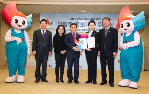 [±¤ÁÖ=¹Ìµð¾îÀü³²]¹ÚÂù ±âÀÚ=10ÀÏ ¿ÀÀü ±¤ÁÖ±¤¿ª½Ãû ºñÁö´Ï½º·ë¿¡¼ ¼¼°èÀûÀÎ ÆËÆä¶ó °¡¼öÀÎ ÀÓÇüÁÖ¸¦ 2015À¯´Ï¹ö½Ã¾Æµå´ëȸ È«º¸´ë»ç·Î ÀÓ¸íÇß´Ù. À̳¯ ÀÓ¾¾´Â ±âÀÚȸ°ßÀ» ÅëÇØ ¡°Àú´Â È«º¸ ¸ðµ¨ÀÌ ¾Æ´Ñ È«º¸´ë»ç¡±¶ó¸ç ¡°±¤ÁÖ±¤¿ª¡¦