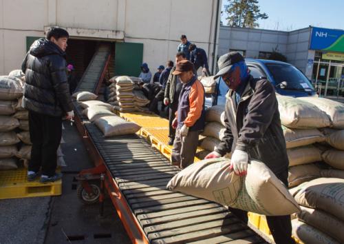 [±¤ÁÖ=¹Ìµð¾îÀü³²]¹ÚÂù ±âÀÚ=9ÀÏ ¿ÀÀü ±¤ÁÖ ¼±¸ ¼Ã¢µ¿ ¼Ã¢³óÇù¿¡¼ 2014³âµµ °ø°øºñÃà¹Ì°î ¼ö¸Å°¡ ½ÃÀÛµÈ °¡¿îµ¥ ÃÖ»óÀÇ µî±ÞÀ» ¹ÞÀº ¹Ì°îµéÀÌ Ã¢°í¿¡ µé¿©Áö´Â °ÍÀ» ³ó¹ÎµéÀÌ ¹Ù¶óº¸°í ÀÖ´Ù.