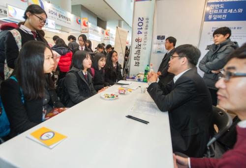 [±¤ÁÖ=¹Ìµð¾îÀü³²]¹Ú Âù ±âÀÚ=1ÀÏ ¿ÀÀü ±¤ÁÖ±¤¿ª½Ãû 1Ãþ ½Ã¹ÎȦ¿¡¼ °øÁ÷ä¿ë¿¡ °üÇÑ ¸ðµç Á¤º¸¸¦ ¾òÀ» ¼ö ÀÖ´Â ¡®2014 ±¤ÁÖ°øÁ÷ÀÚ ¹Ú¶÷ȸ¡¯°¡ °³ÃÖµÈ °¡¿îµ¥ °øÁ÷ÀÚ°¡ µÇ±â À§ÇØ °í±³»ýµéÀÌ Å« °ü½ÉÀ» °®°í Á¤º¸¸¦ ¾ò°í ÀÖ´Ù. ±¤ÁÖ¡¦