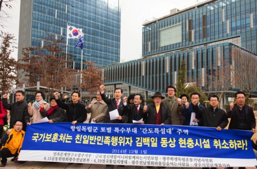 [±¤ÁÖ=¹Ìµð¾îÀü³²]¹Ú Âù ±âÀÚ=1ÀÏ ¿ÀÀü Á¤ºÎ ±¤ÁÖÁö¹æÇÕµ¿Ã»»ç ÀÔ±¸ ¾Õ¿¡¼ ±Ù·ÎÁ¤½Å´ë ÇÒ¸Ó´Ï¿Í ÇÔ²² ½Ã¹Î¸ðÀÓ´Üü°¡ ±è¹éÀÏ µ¿»ó ÇöÃæ½Ã¼³ ÁöÁ¤ öȸ¸¦ ¿ä±¸Çß´Ù. ½Ã¹Î´Üü´Â ¡°Ä£ÀÏ ¹Ý¹ÎÁ·ÇàÀ§ Áø»ó±Ô¸íÀ§¿øÈ¸°¡ Áö³ 2009³â ±è¹é¡¦