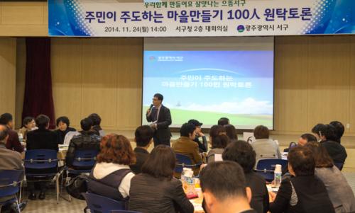 [±¤ÁÖ=¹Ìµð¾îÀü³²]¹Ú Âù ±âÀÚ=24ÀÏ ¿ÀÈÄ ¼±¸Ã» ´ëȸÀǽǿ¡¼ ÁֹΠÅä·ÐÀÚ 100¿©¸íÀÌ Âü¼®ÇÑ °¡¿îµ¥ ¡®ÁÖ¹ÎÀÌ ÁÖµµÇÏ´Â ¸¶À»¸¸µé±â ¹«¾ùÀÌ ÇÊ¿äÇѰ¡?¡¯ ¶ó´Â ÁÖÁ¦·Î 100ÀÎ ¿øÅ¹Åä·Ðȸ¸¦ °³ÃÖÇß´Ù.