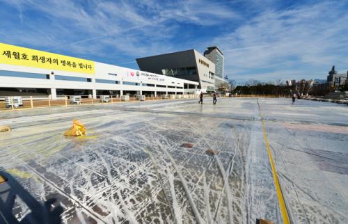 [±¤ÁÖ=¹Ìµð¾îÀü³²]¹Ú Âù ±âÀÚ=20ÀÏ ¿ÀÀü ±¤ÁÖ±¤¿ª½Ã û»ç ¾Õ ¾ß¿Ü ±¤Àå¿¡¼ Áö³ÇØ ½Ã¹Îµé·ÎºÎÅÍ Å« Àα⸦ ²ø¾ú´ø ¾ß¿Ü ºù»óÀå ¼³Ä¡ °ø»ç°¡ ÇÑâÀÌ´Ù. ±¤Áֽô Áö³ÇØ ¾ß¿Ü ¹æ»óÀå ÆóÀå±îÁö ãÀº À̿밴Àº ÃÑ 9¸¸ 5õ¿©¸í¿¡ À̸£·¶¡¦