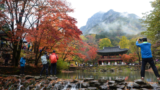 [À强=¹Ìµð¾îÀü³²]¹ÚÂù ±âÀÚ=¿ÃÇØ·Î 18¹øÂ°¸¦ ¸ÂÀÌÇÑ 'À强 ¹é¾ç ´ÜdzÃàÁ¦'¸¦ ãÀº °ü±¤°´µéÀÌ ¹é¾ç»ç ½Ö°è·ç ¾Õ¿¡ ÆîÃÄÁø ¿À»öºû±ò ´ÜdzÀÇ ¾Æ¸§´Ù¿òÀ» Ä«¸Þ¶ó¿¡ ´ã°í ÀÖ´Ù.