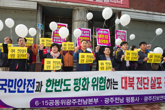 [Æ÷Åä´º½º=¹Ìµð¾îÀü³²]¹ÚÂù ±âÀÚ=22ÀÏ ±¤ÁÖ ºÏ±¸ ÁßÈﵿ »õ´©¸®´ç»ç ¾Õ¿¡¼ ±¤ÁÖ¡¤Àü³²Áö¿ª ½Ã¹Î´ÜüµéÀº "Çѹݵµ ÆòÈ¿Í ±¹¹ÎÀÇ ¾ÈÀüÀ» À§ÇùÇÏ´Â ´ëºÏÀü´Ü »ìÆ÷¸¦ ÁߴܽÃÄÑ¾ß ÇÑ´Ù"°í Ã˱¸Çß´Ù. ½Ã¹Î´Üü´Â 'ÆòÈ'¸¦ »ó¡ÇÏ´Â ÇϾá»ö dz¡¦