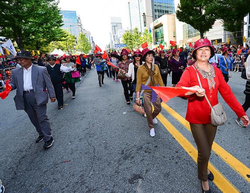 [±¤ÁÖ=¹Ìµð¾îÀü³²]¹ÚÂù ±âÀÚ = 70~80³â´ë Ãß¾ïÀ» ÁÖÁ¦·Î ÇÑ ÃæÀåÃàÁ¦°¡ °³¸· ÀÌÆ²Â°¸¦ ¸ÂÀÌÇÑ °¡¿îµ¥ 9ÀÏ ¿ÀÈÄ ±¤ÁÖ µ¿±¸ ±Ý³²·Î °Å¸®¿¡¼ 8õ¿©¸íÀÌ Âü°¡ÇØ ±æ°Å¸® ÆÛ·¹À̵带 ÆîÄ¡°í ÀÖ´Ù. À̹ø ÃàÁ¦´Â ¡®Ãß¾ï°ú ºñ»ó¡¯À» ÁÖÁ¦·Î 8ÀϺΡ¦