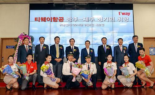 [±¤ÁÖ=¹Ìµð¾îÀü³²] ¹ÚÂù ±âÀÚ = 4ÀÏ ¿ÀÀü ±¤ÁÖ°øÇ׿¡¼ Ƽ¿þÀÌÇ×°øÀÇ ±¤ÁÖ¿Í Á¦ÁÖ¸¦ ÀÕ´Â ³ë¼± ÃëÇ×½ÄÀÌ ¿¸° °¡¿îµ¥ À±ÀåÇö ±¤ÁÖ½ÃÀåÀÌ Âü¼®¿¡ Å×ÀÌÇÁ Ä¿ÆÃÀ» Çϰí ÀÖ´Ù. Ƽ¿þÀÌ Ç×°øÀº ±¤ÁÖ ÃÖÃÊ·Î ÃëÇ×ÇÏ´Â Àúºñ¿ëÇ×°ø»ç·Î ÇÏ·ç 4ȸ¡¦